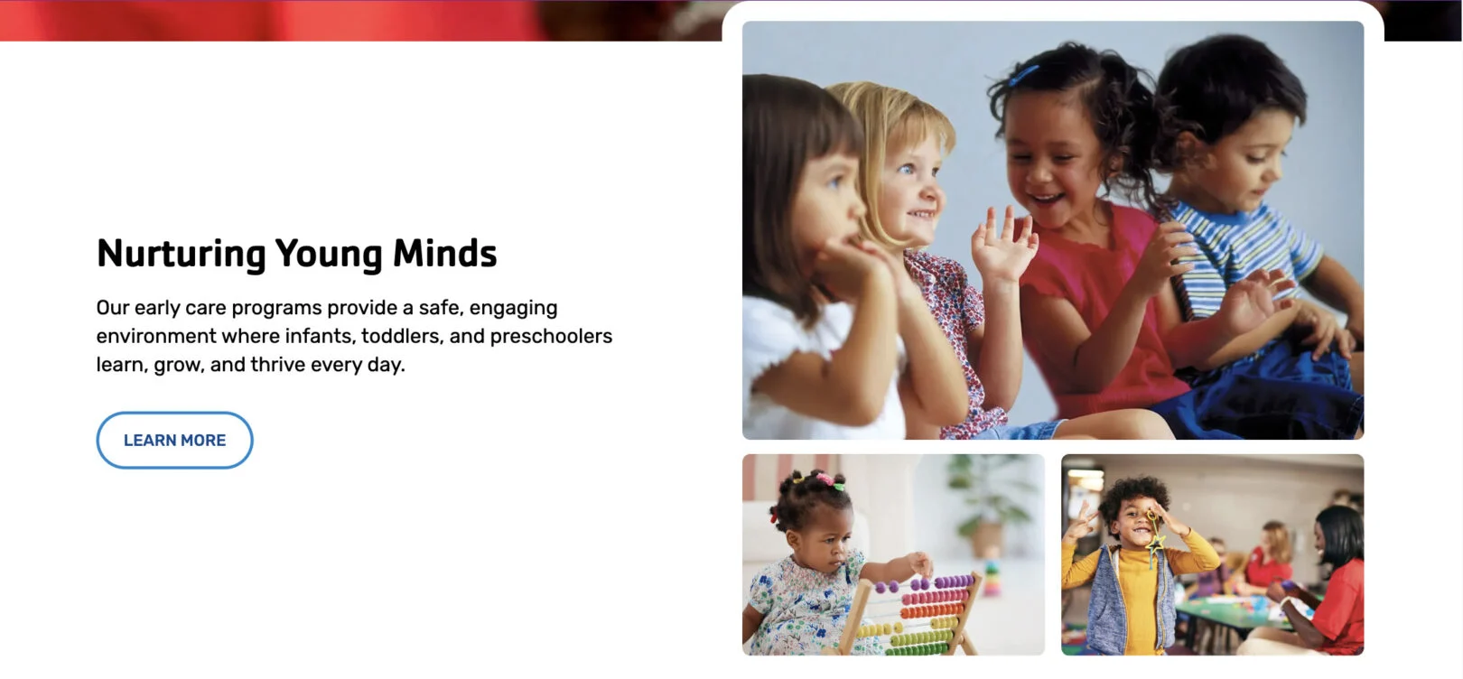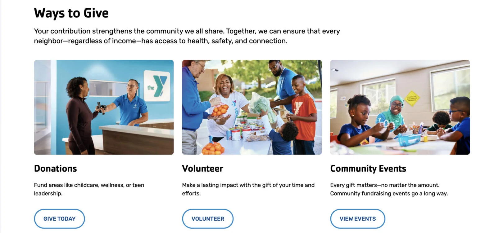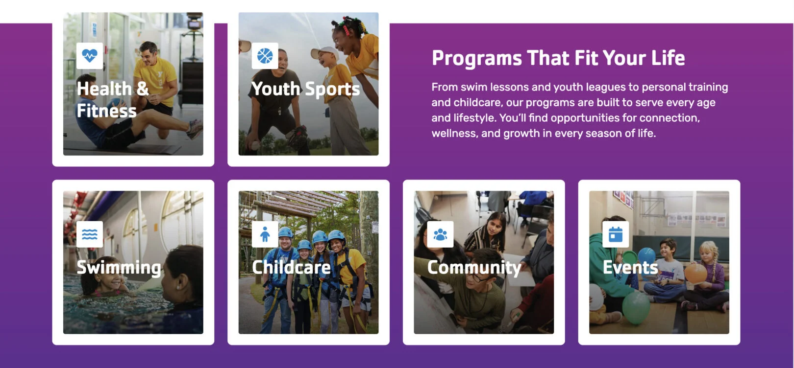 Use this module to display 1–2 word information in a clean, visual grid. Each card features an image, title, and link, allowing users to quickly explore different offerings or sections of your site. Cards can be repeated as needed to showcase multiple programs.