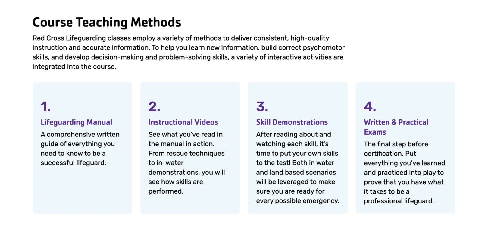 Use this module to display content in a numbered format. Eachcard includes a number, title, and supporting copy. This layout is especially effective for outlining processes, steps, or teaching methods where order and progression are important. Cards can be repeated to build a complete sequence.