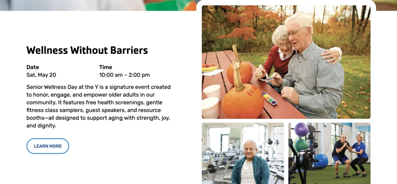 Use this module to add an introduction section with text, event information, and supporting images.