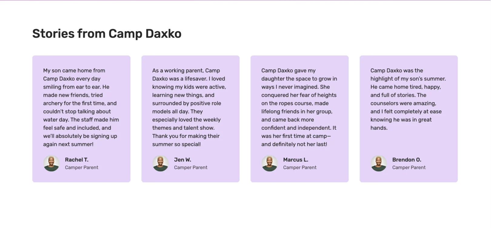 Title (One Per Slide): Displays as the person’s role or identifier (e.g., “Parent of camper”).