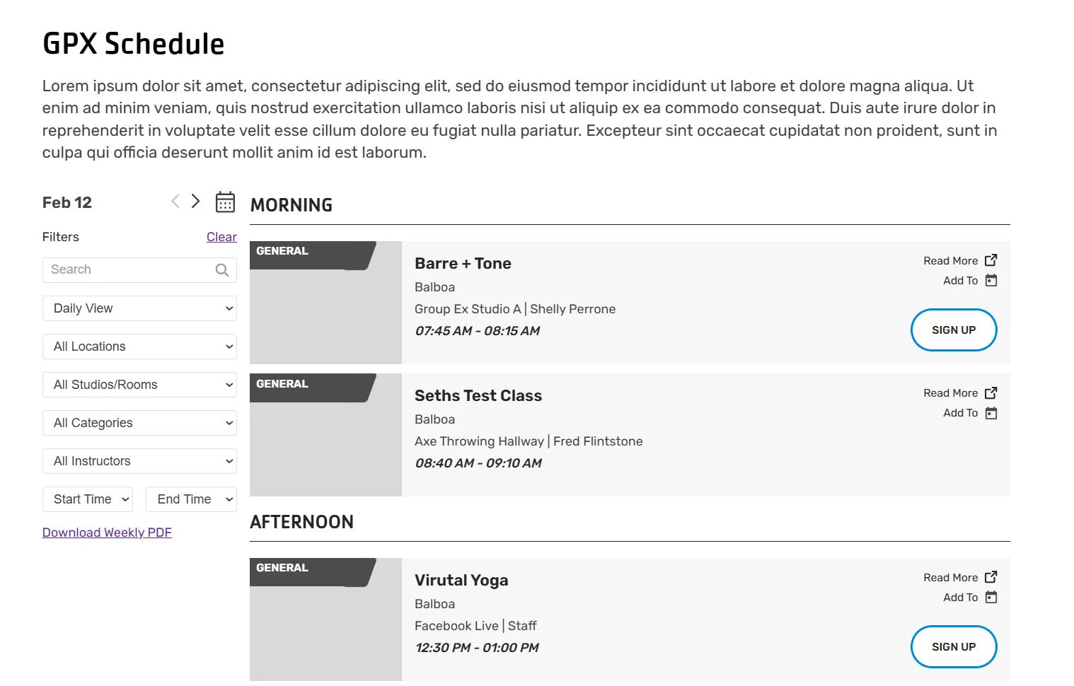 Use this module to display available schedules configured in your Group Ex Pro account.