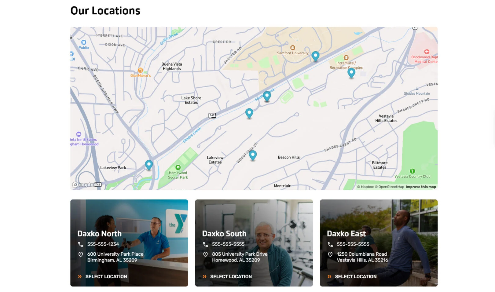 Headline: Appears as the title above the grid of location cards. Keep it short, about 2–7 words.