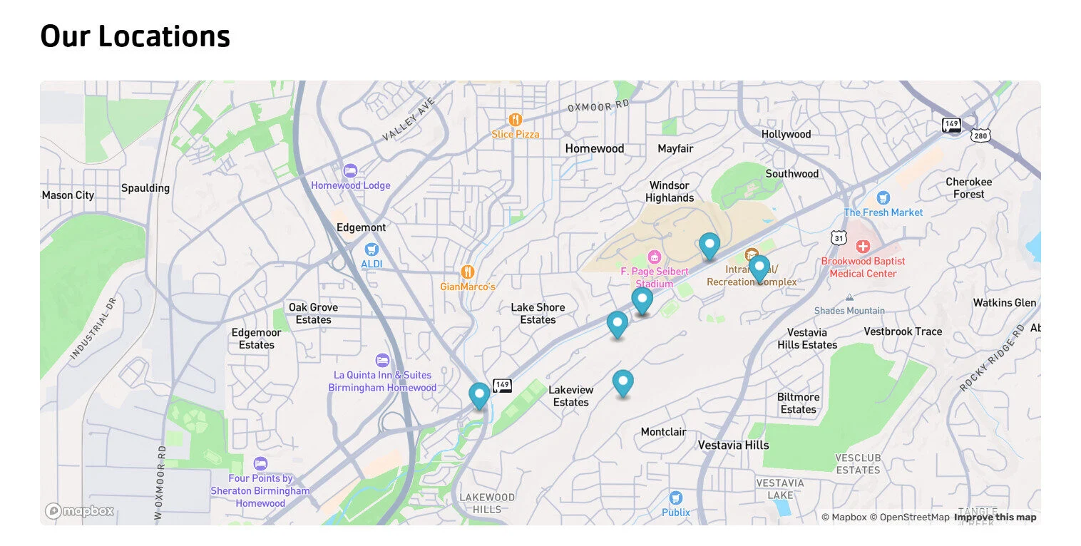 Addresses: Appears as pins on an interactive map. Each address added will create a new pin.